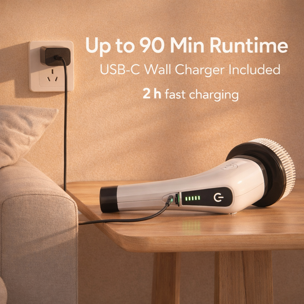 Powered by a 2500mAh lithium battery, enjoy up to 90 minutes of continuous cleaning after just 2 hours of USB-C fast charging.No cords. No constant recharging. No stopping halfway through.Plus, the built-in battery display keeps you in control so you’re never caught off guard.